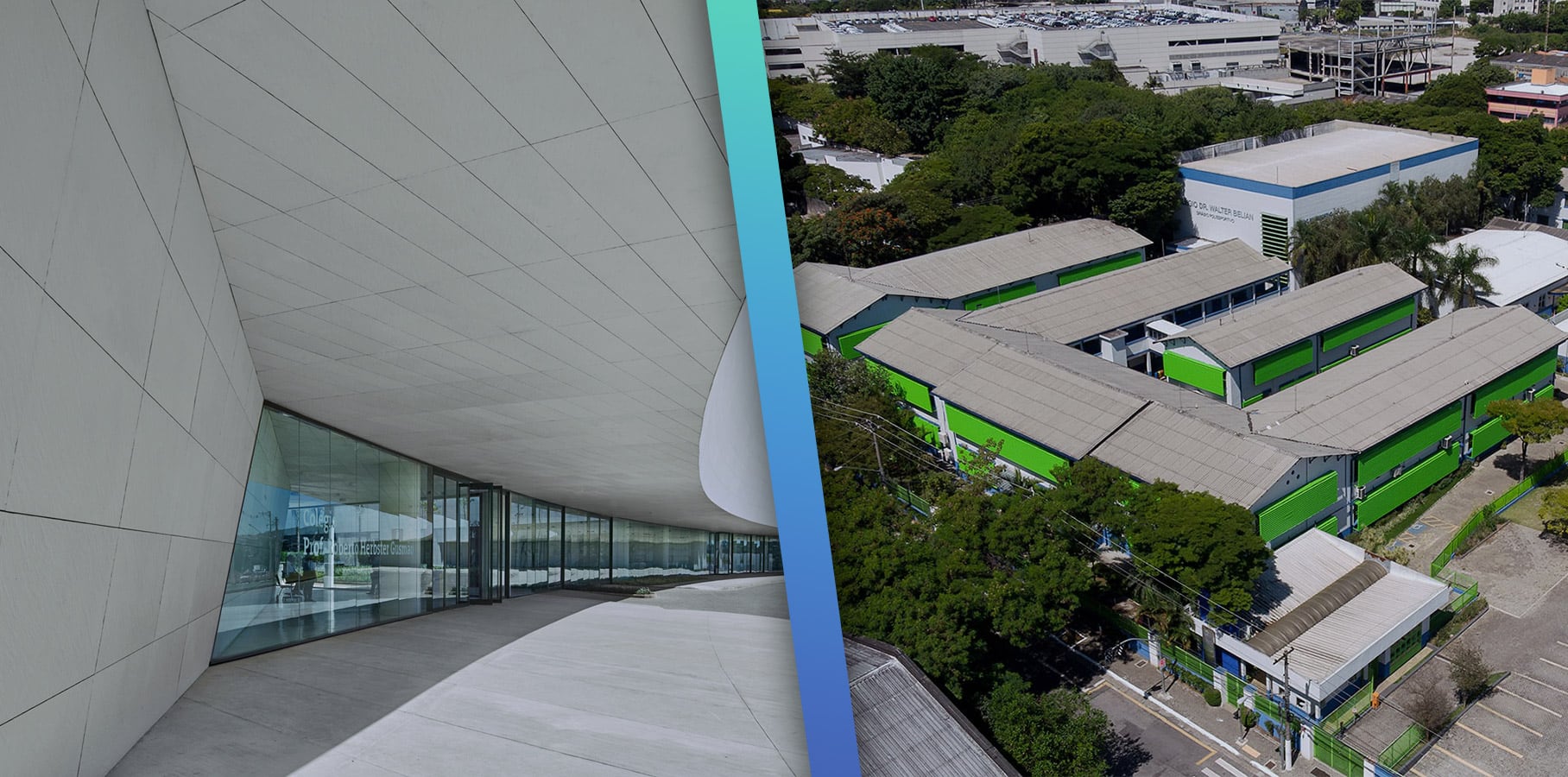 Administração, colégios, acervo histórico e ambulatório.